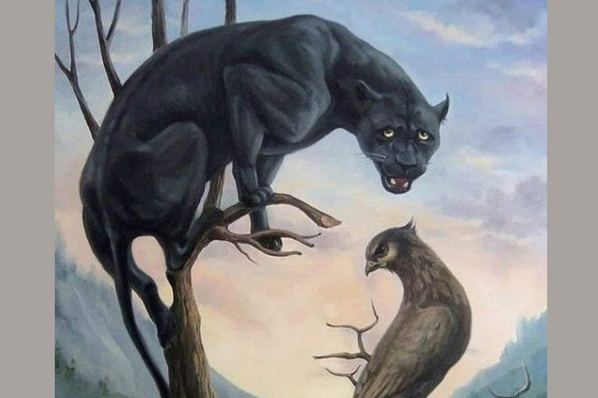 در آن سه شکل ممکن وجود دارد: عقاب، پلنگ و صورت یک زن